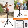 Captura fotos y vídeos impresionantes sin esfuerzo con este trípode para teléfono celular que viene con un práctico control remoto inalámbrico.. El trípode tiene una altura máxima de 64 pulgadas, junto con un cabezal giratorio de 210 grados y un soporte giratorio de 360 grados, lo que le permite capturar fotografías desde varios ángulos para satisfacer sus diversas necesidades fotográficas.