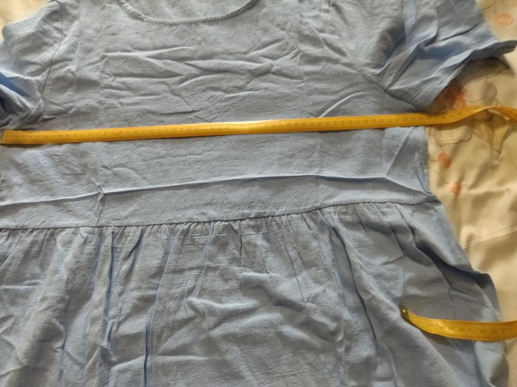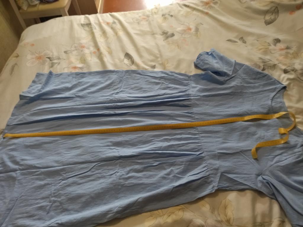 El vestido es bonito, pero no adiviné la talla. Pedí XL, debería haber pedido L por 48 rublos.. Pero es mi culpa. La tela no está mal, 35 por ciento algodón y 65 por ciento poliéster. Gracias al vendedor y a los empleados de Jumu..