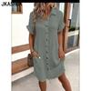 JKASHDK Moda de mujer Verano Primavera Color sólido Estampado Manga corta Cuello en V Cintura suelta Vestidos casuales