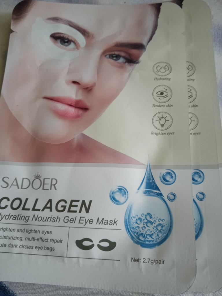 Mascarilla de colágeno para ojos, llegaron 5 piezas. Lo probaré más tarde, todo estaba bien embalado.