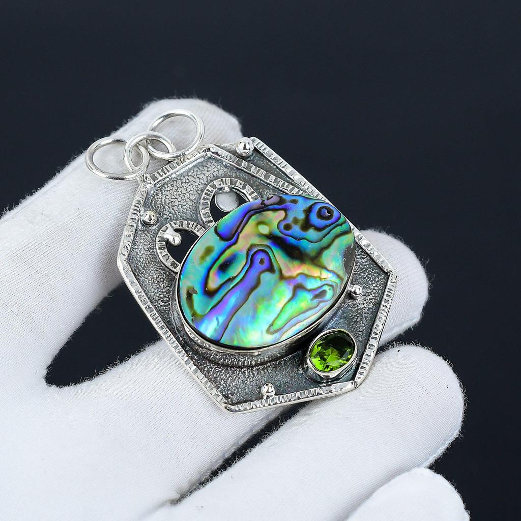 Concha de Abulón, Colgante de Gema Peridoto, Gema de Concha de Abulón Natural Hecho a Mano Plata de Ley 925 Colgante de Concha de Abulón Para Mujeres Colgante Para Regalos