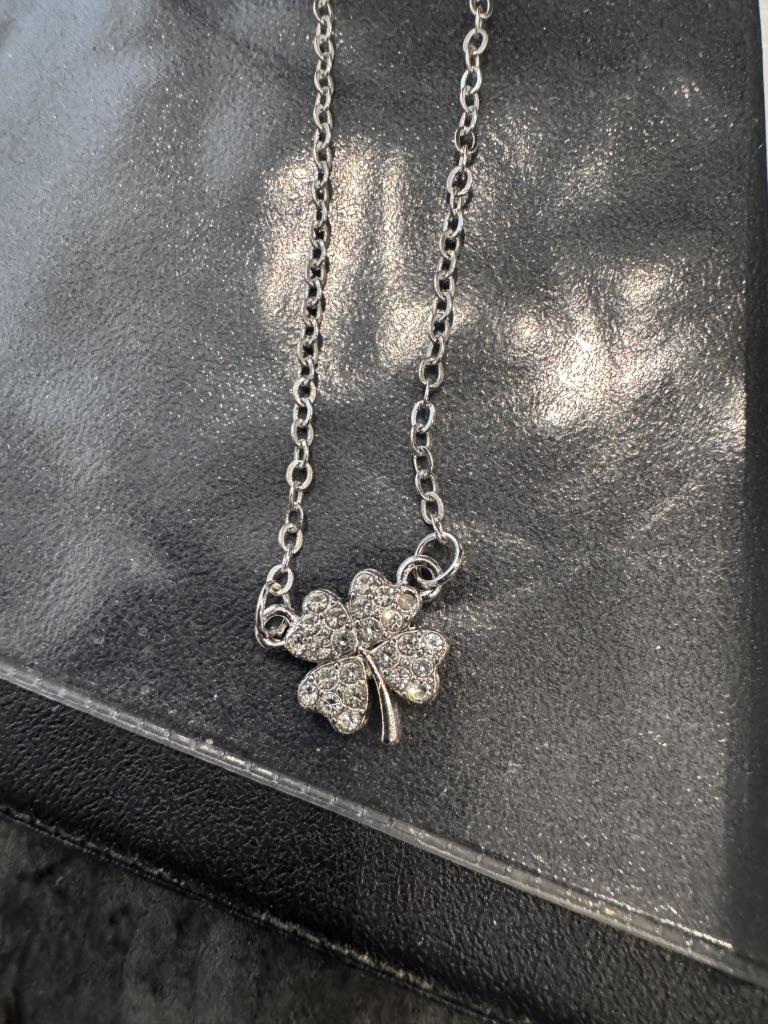Collar con colgante de circonita y trébol de cuatro hojas para mujer, cadena con colgante de hojas de la suerte, joyería