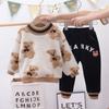Suéter grueso de terciopelo con cuello redondo y estampado completo de dibujos animados de oso de invierno para bebé, traje de dos piezas