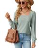 2024 European And American Autumn/Winter New Solid Color Square Collar Jacquard Long Sleeve Loose T-Shirt Top For Women
