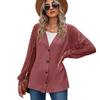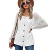Cárdigan Top de Manga Larga de Color Sólido Suelto con Botones y Encaje Patchwork para Mujer Otoño Invierno Europeo y Americano 2024