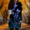 New In Autumn Flowing Butterfly Print Plus Size Dress Women O'neck Long Sleeves Casual Pocket Dresses