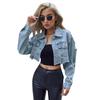 GMXIA Chaquetas y abrigos cortos de mezclilla de moda, casuales, combinables, con cuello tipo polo y manga larga con estampado de color sólido para mujer