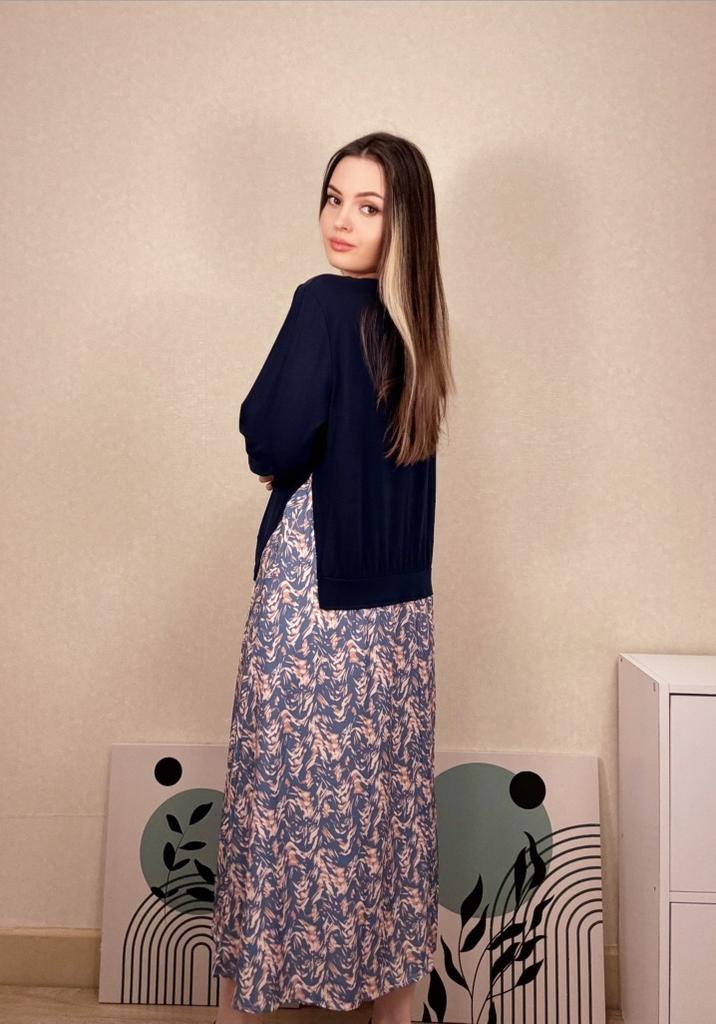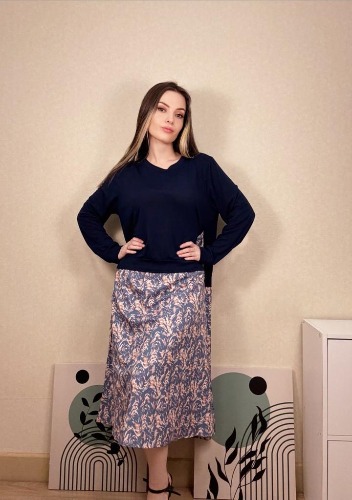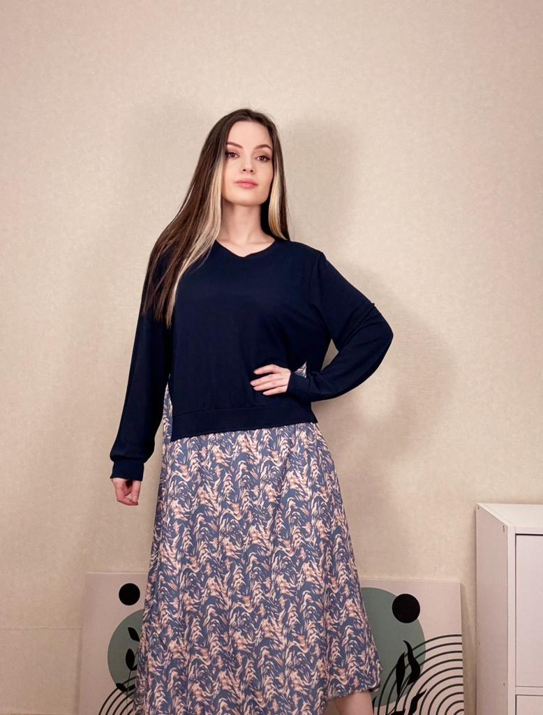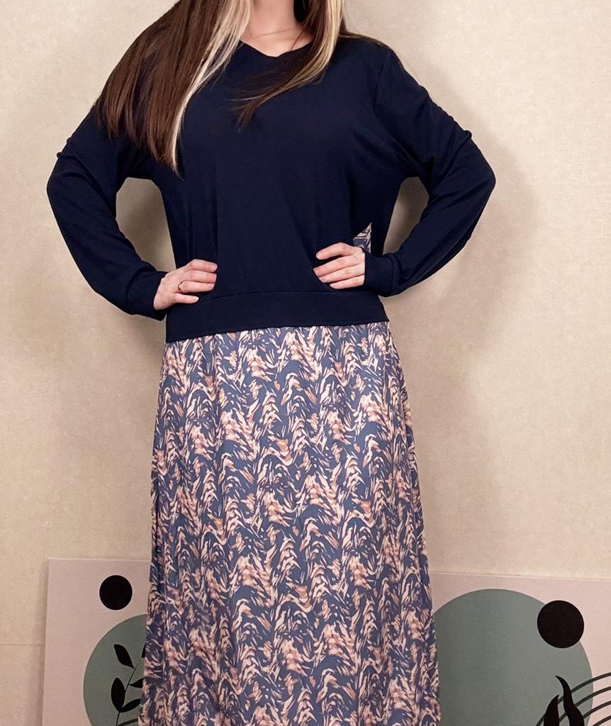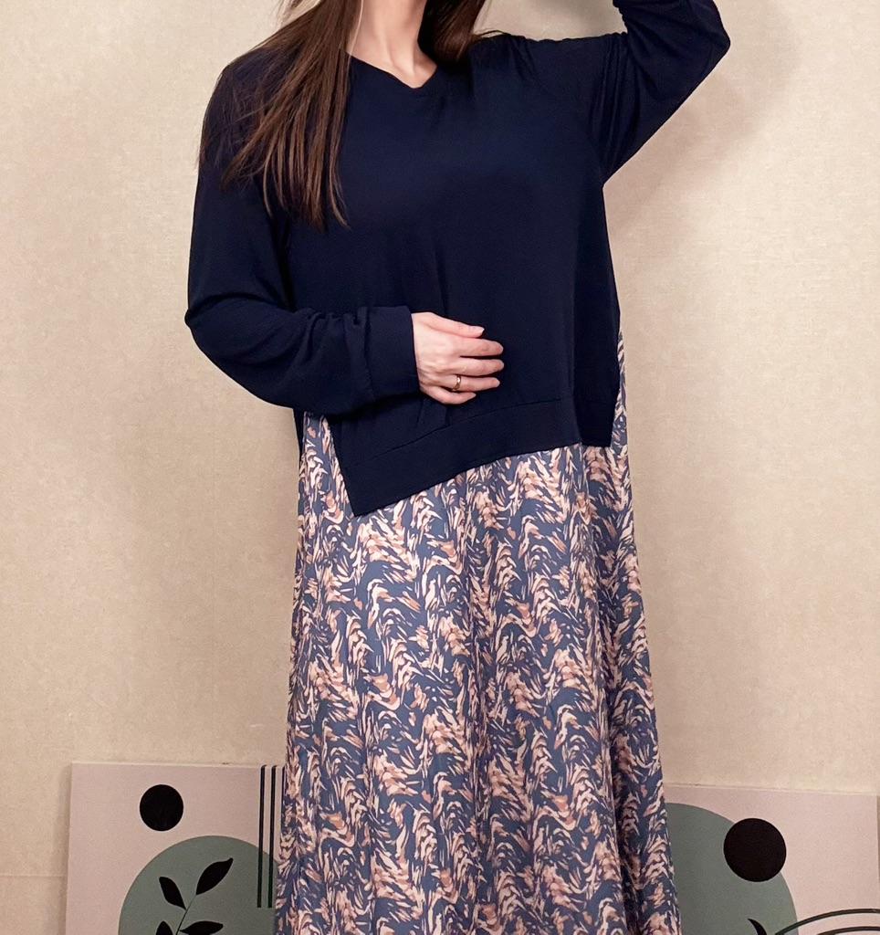El vestido es muy interesante. Me queda holgado para mi talla 62. E incluso un poco grande en los hombros. No se ve exactamente como en la foto, ya que no tiene los pliegues en la parte inferior debajo del suéter. Pero así también está bien.