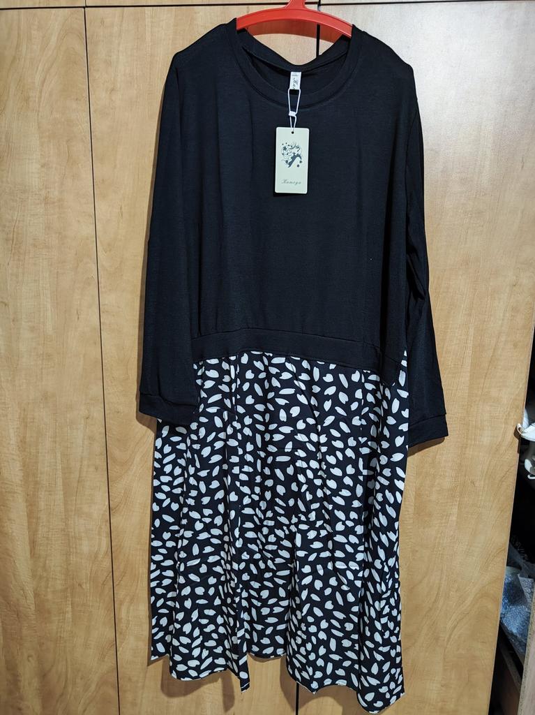 Vestido de punto para mujer El vestido es elegante y hermoso Hecha de tela de poliéster, spandex. La camisa tiene mangas largas cuello redondo está unida a una falda. Se puede pedir en tallas XL-,5XL Cruz de calidad y buena, ¡muy recomendable comprar!