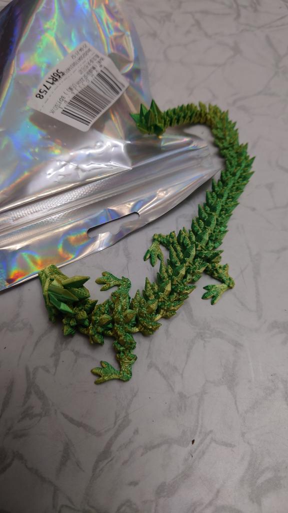 Muy bonito, en la muestra el color parecía más lechoso y mate, al desempacarlo el dragón resultó ser brillante y ligeramente transparente, como un cristal de sal, no se ve menos bonito, la figura está hecha con cuidado, nada se rompió y todas las articulaciones son móviles
