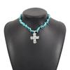 Collar de grava irregular con cruz de turquesa y piedra natural de estilo vaquero occidental