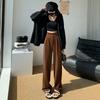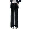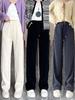 Autumn Women's Black Velvet Wide Leg Trousers for Outwear