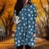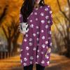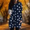 New In Autumn Solid Color Dog Paw Print Plus Size Dress Women O'neck Long Sleeves Casual Pocket Dresses