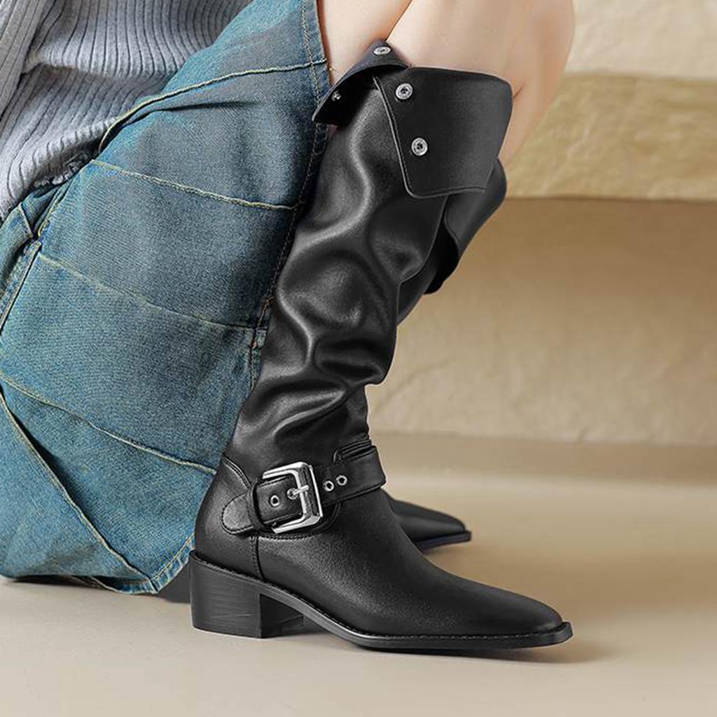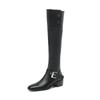 Krazing Pot Zapatos de Microfibra con Pelo Otoño Invierno Tacón Medio Grueso Botas de Montar Remaches Punta Cuadrada Mantener Caliente Botas Altas hasta la Rodilla