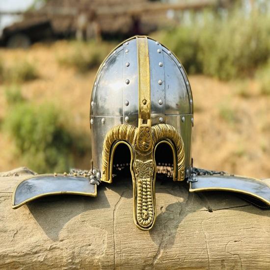1. Authentic Viking Design: The helmet features a traditional Viking design and is complemented by intricate chainmail that provides both protection and historical accuracy. The brass finish adds elegance and authenticity to the piece.