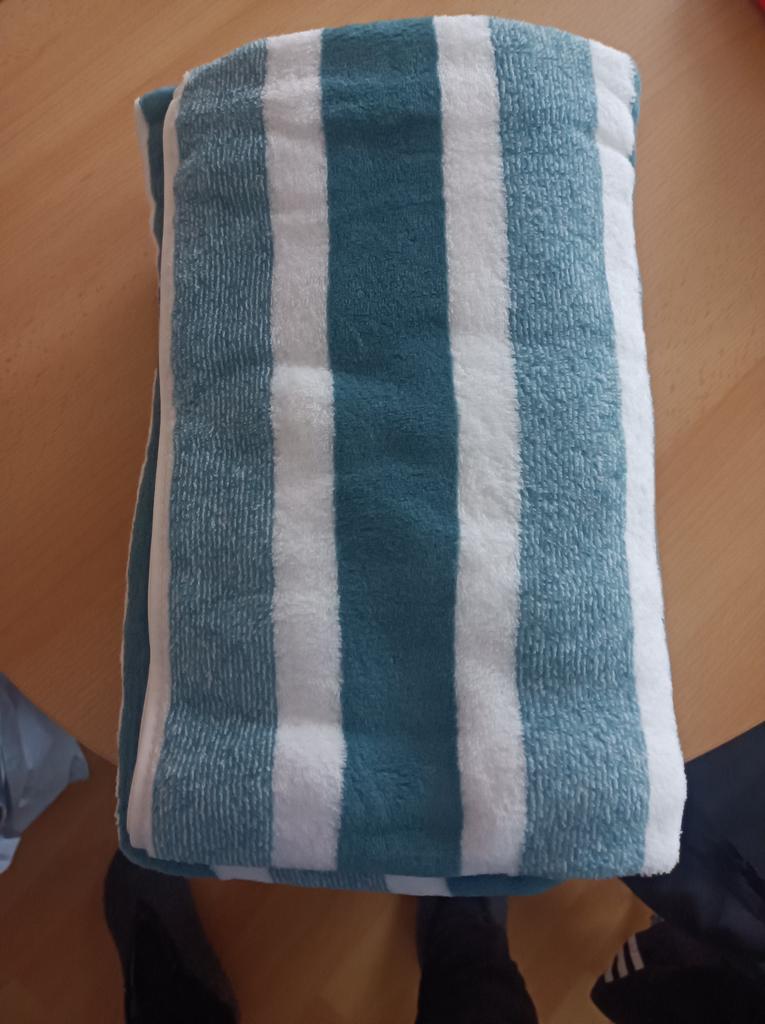 El pedido llegó antes del plazo indicado. La calidad es muy suave, no parece 100% algodón, creo que hay un poco de microfibra en la composición, pero aún así es una toalla muy fresca.