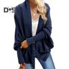 Cárdigan de mujer, abrigo sin cuello, manga larga, murciélago, abierto al frente, tejido de punto, puños elásticos, color sólido, holgado, cárdigan de punto