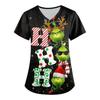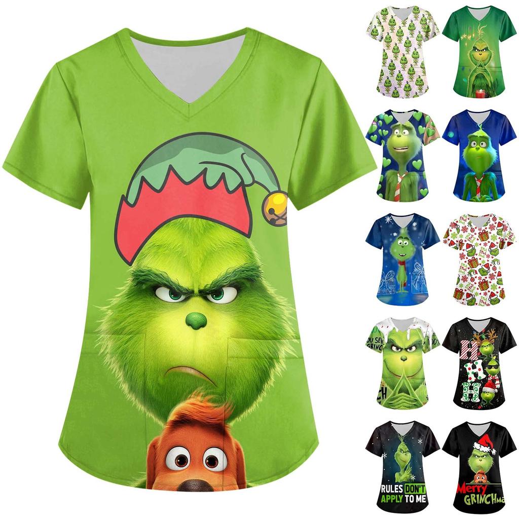 Moda Femenina Estampado Manga Corta Cuello en V Patrón Tops Bolsillo Camisetas de Trabajo
