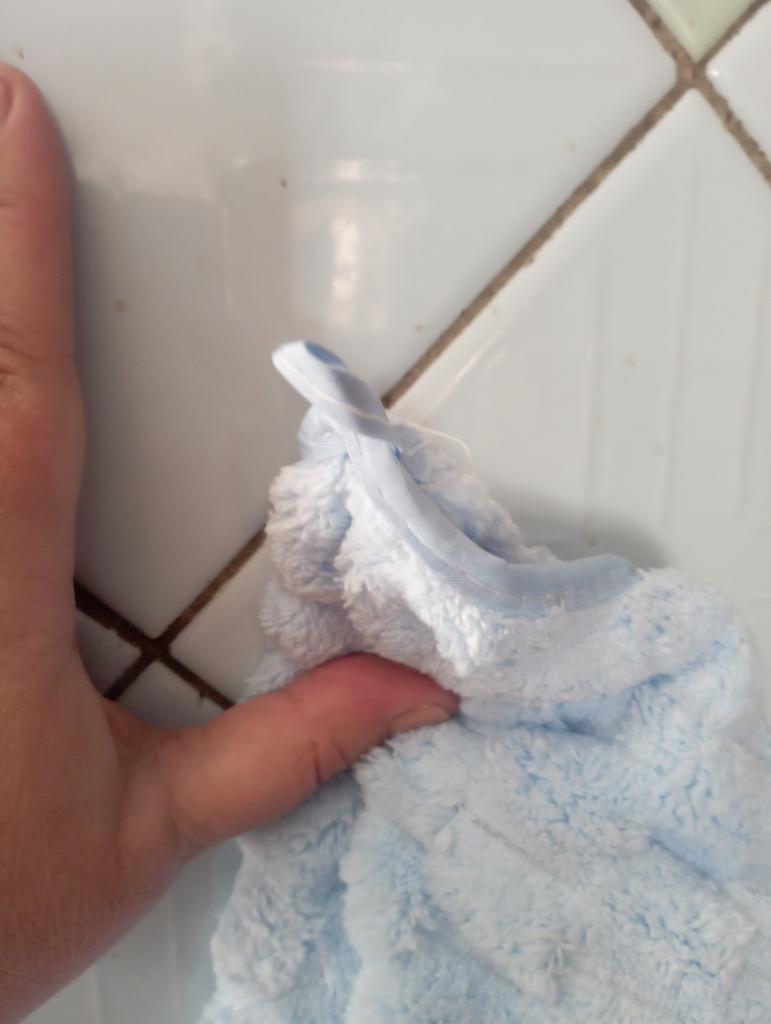 La toallita es agradable, de microfibra. Pero el hedor que desprende es horrible, espero que se vaya después del lavado. Y por ahora no dan ganas ni de usarla, voy a recordar que era así de insoportable.