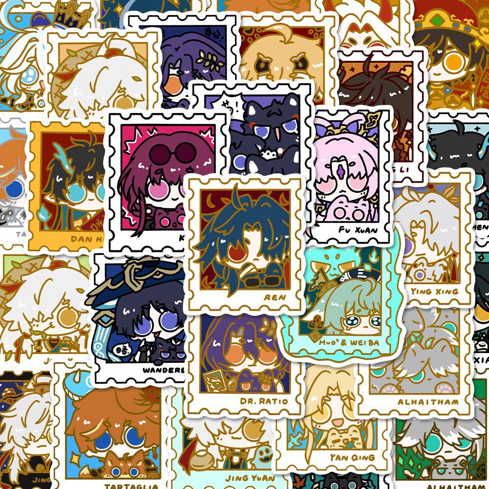 48PCS popular cute stickers featuring HSR (Honkai: Star Rail) and Genshin Impact, high-quality anime-style small stamps for DIY decals