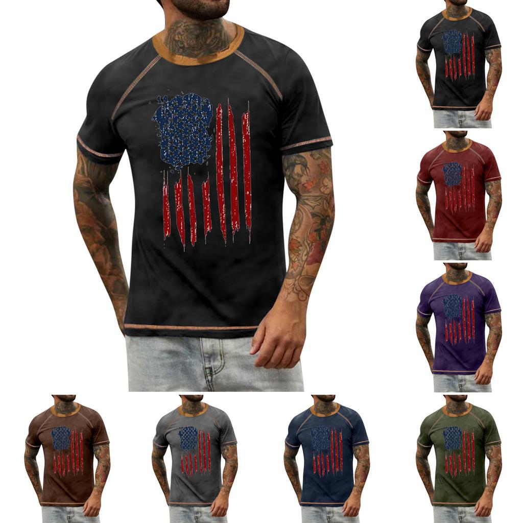 Camiseta Raglán Vintage De Manga Corta Con Cuello Redondo Para Hombre, Camiseta Estampada Del Día De La Independencia