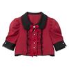 Azura Exchange Red Dahlia Sequin Patchwork Sleeve Button Up Velvet Top