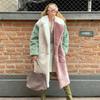 Abrigo de piel sintética de invierno para mujer, abrigo grueso con retazos de colores, chaquetas de piel cálidas de manga larga y cuello vuelto para mujer