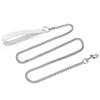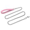 Classic Metal Dog Leash,Chew Proof Pet Leash Chain with Leather Padded Handle & Alloy Hook for Small Large Medium Dogs Outdoor Training