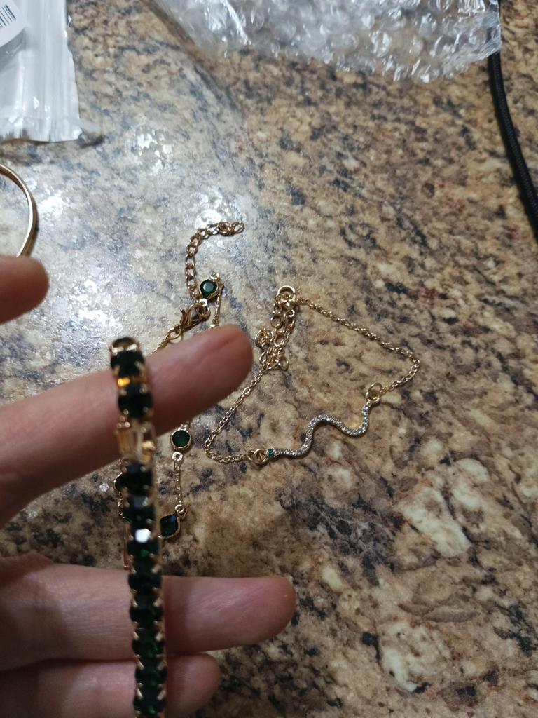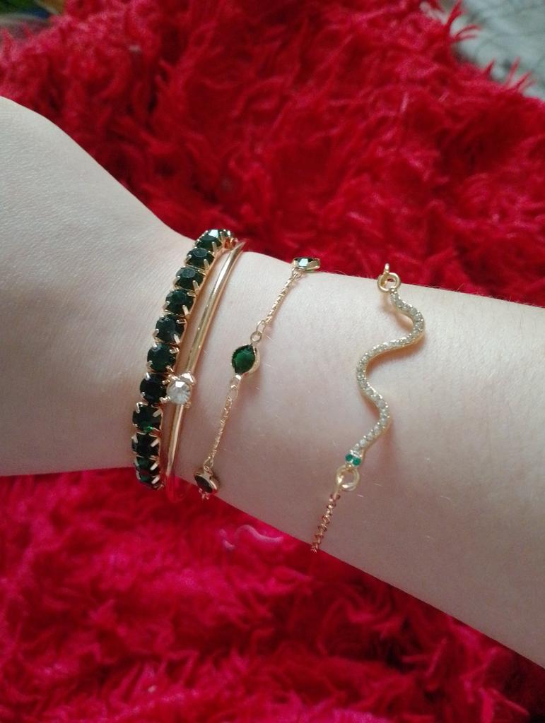 Pulseras muy bonitas. Las piedras son muy brillantes. Se ve hermoso en la mano.