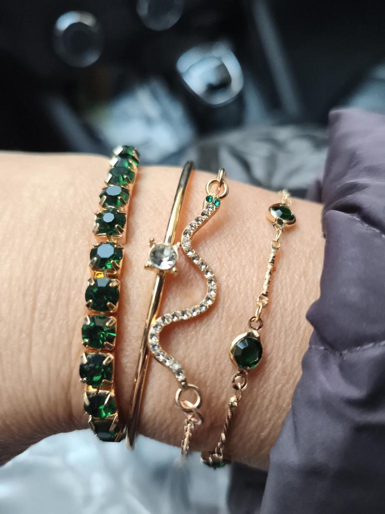 Juego de 4 pulseras de metal con piedras preciosas verdes y serpiente para mujer, brazaletes de diamantes de imitación, regalo de cumpleaños y Navidad