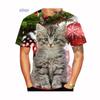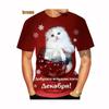 Nueva Moda Camiseta Navideña Estampada en 3D Popular Unisex Camisetas Árbol de Navidad Muñeco de Nieve Gato Estampado Manga Corta