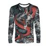 Camiseta de Manga Larga para Hombre con Dragón Chino de Cuello Redondo, Dibujos Animados 3D Estilo Harajuku Estampada, Moderna y Personalizada, Oversize y Holgada