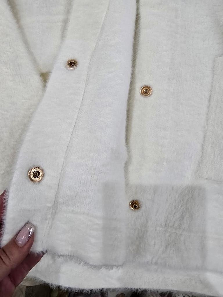 Cárdigan difuso para mujer, chaqueta de terciopelo de visón de imitación, cárdigan corto de mohair para mujer, cárdigan de punto con solapa, suéteres con bolsillos