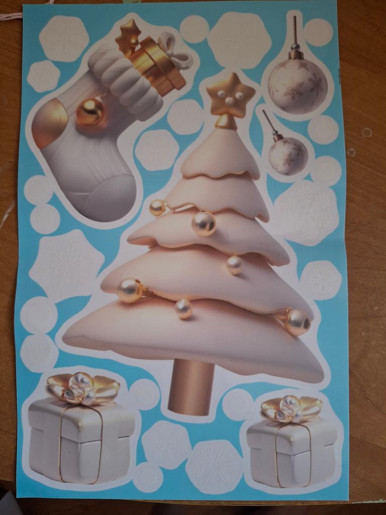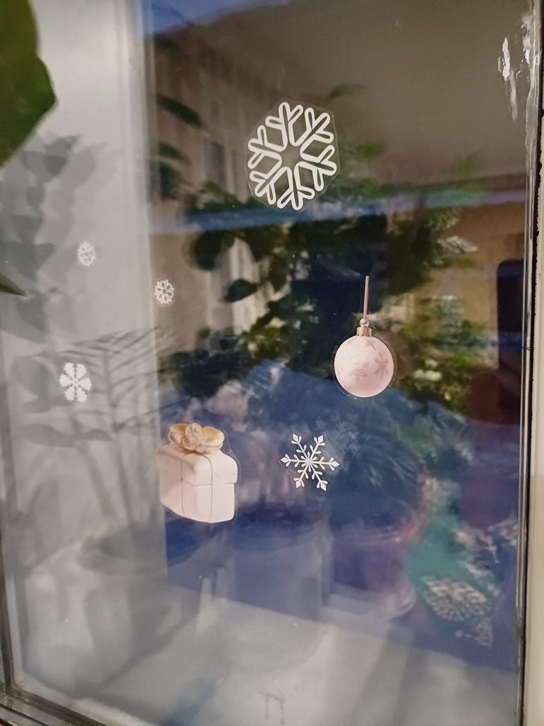 Excelentes pegatinas, se adhieren bien tanto al espejo como a las ventanas. La base no es pegamento, sino solo película. Se podrán quitar de la ventana y volver a pegar el año que viene.
