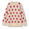 Suéter de Punto de Invierno para Mujer Bordado de Fresa Jerséis Oversize Harajuku Casual Cuello O Tejido Holgado Jersey Suéter Mujer