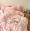 Juego de cama de algodón lavado de 4 piezas para niñas con volantes, encaje bordado, funda nórdica, juego de 3 piezas
