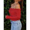 Top corto sexy de cintura alta con hombros descubiertos y mangas largas con orejas de madera para mujer, otoño e invierno