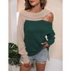 Autumn and Winter Women's Sexy Strapless Knitted Irregular Lapel Collision Splicing Loose Sweater
