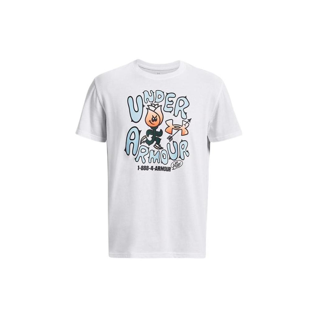 Under Armour Rose Delivery Flame Cartoon Letter Print Casual Crew Neck Short Sleeve T-Shirt Men T-Shirts White 1380916-100