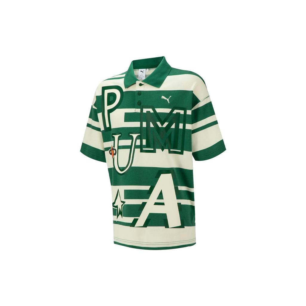 Puma Ss23 Serie Dream Pack Camiseta Polo Casual de Manga Corta con Estampado de Letras a Rayas Unisex Camisetas Polo Verde Oscuro 539985-37