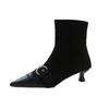 New Style Fashion Women's Shoes Sleeve Women's Boots Autumn Pointed Toe Solid Short Barrel Stilettos or Thin Heels Knight Boots