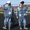 Traje de mezclilla de primavera y otoño para niños Chaqueta con capucha de mezclilla + jeans Traje de dos piezas de moda para niños y niños