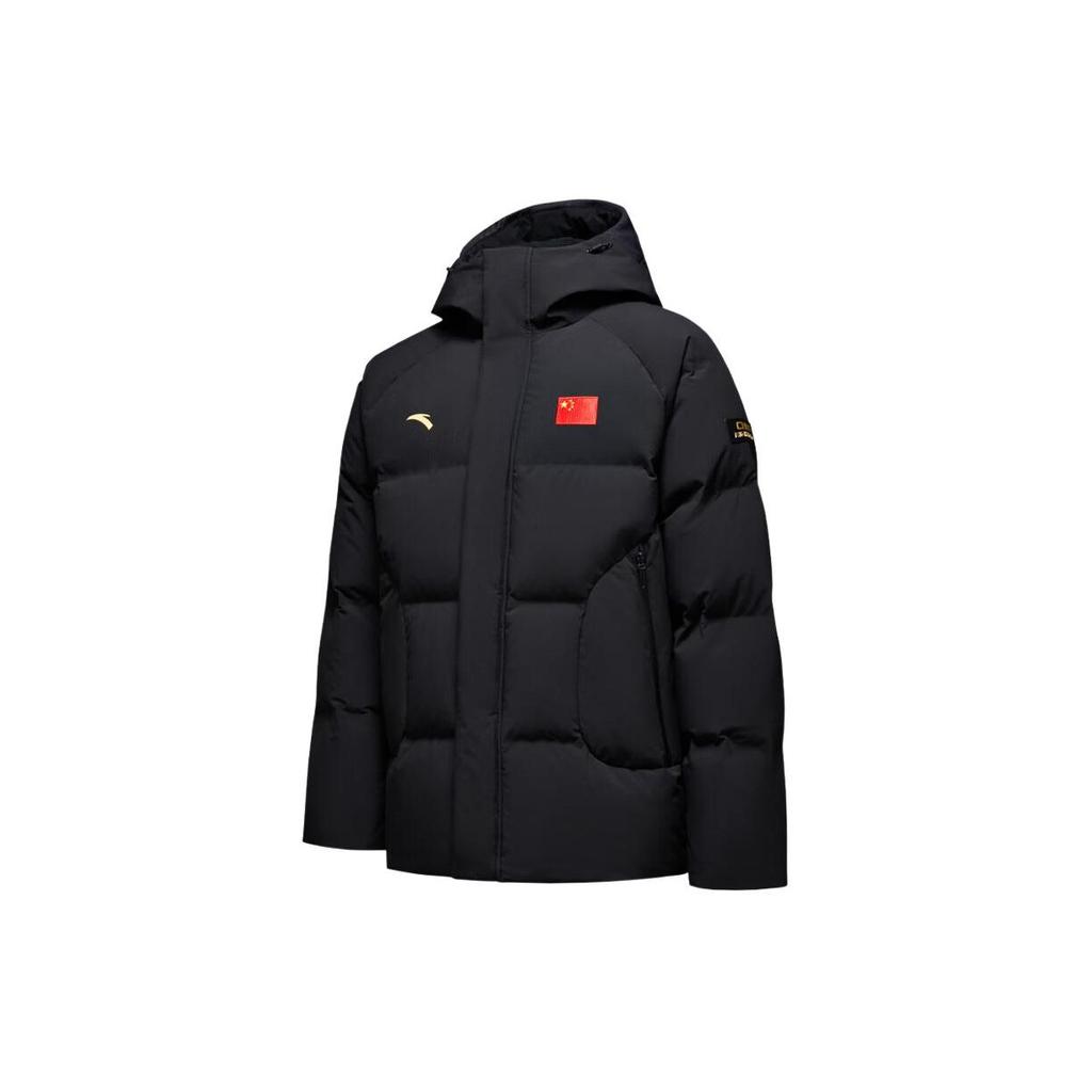 Anta Classic Series Logo Hooded Zipper Thick Casual Short Down Jacket Unisex outerwear Black 462340106-1