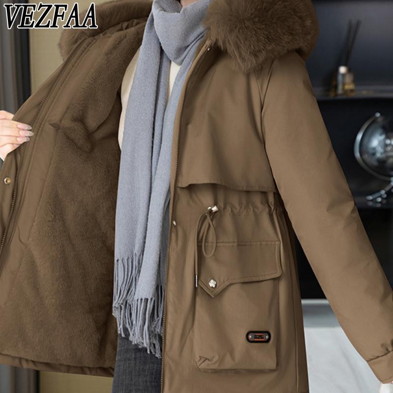 VEZFAA Chaquetas y abrigos de manga larga con estampado de colores sólidos para otoño e invierno a la moda para mujer Abrigos de plumas