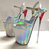 Fashion Sexy Women Sandals Summer 22cm Stilettos Heels Fetish Strippers Dance Shoes Luxury Platform Extreme High Heels Silver Pink Shoe