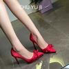 Slip-On Silk Bowknot Pumps Women Sexy Pointed Toe Stiletto Heels Party Shoes Woman Black Red Super High Heel Pumps Ladies 8.5cm