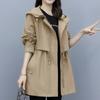 Gabardina de mujer, mediana y larga, para primavera y otoño, nueva, holgada, informal, a la moda, estilo militar, con capucha color café.