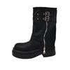 Botas de Plataforma Gruesa de Moda para Mujer 2024 Nuevas Botas Cowboy Pantyhose Diseño de Hebilla con Cinturón y Cremallera Botas para Mujer Botines de PU