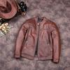 Chaqueta de cuero de vaca estilo motociclista de estilo vintage de color marrón rojizo y talla china para hombre, chaquetas de cuero de vaca auténticas para hombre, otoño