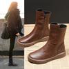 Botas cortas retro de estilo británico de felpa nuevas de otoño e invierno de 2024, botas de cabeza redonda de moda para mujer, suela plana grande y versátil para mujer